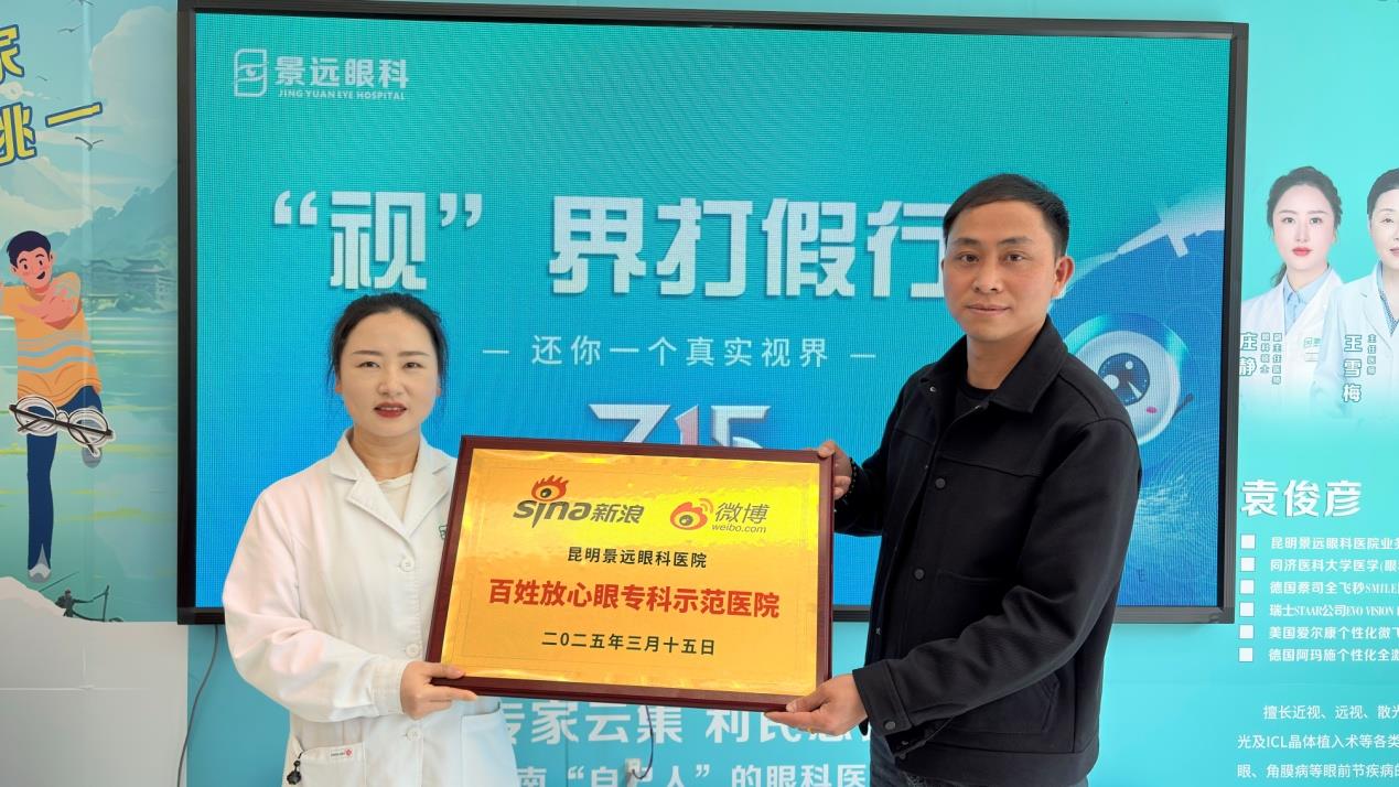 活动中,景远眼科还迎来了一个令人振奋的时刻。在这个特别的日子里,医院荣获新浪微博精选“百姓放心眼专科示范医院”称号。授牌仪式由新浪微博云南区事业部总监魏银友先生和景远眼科党支部书记庄静主任共同完成。魏银友先生对景远眼科的专业水平和良好口碑给予了高度评价,并表示此次授牌是对广大患者的一份承诺。