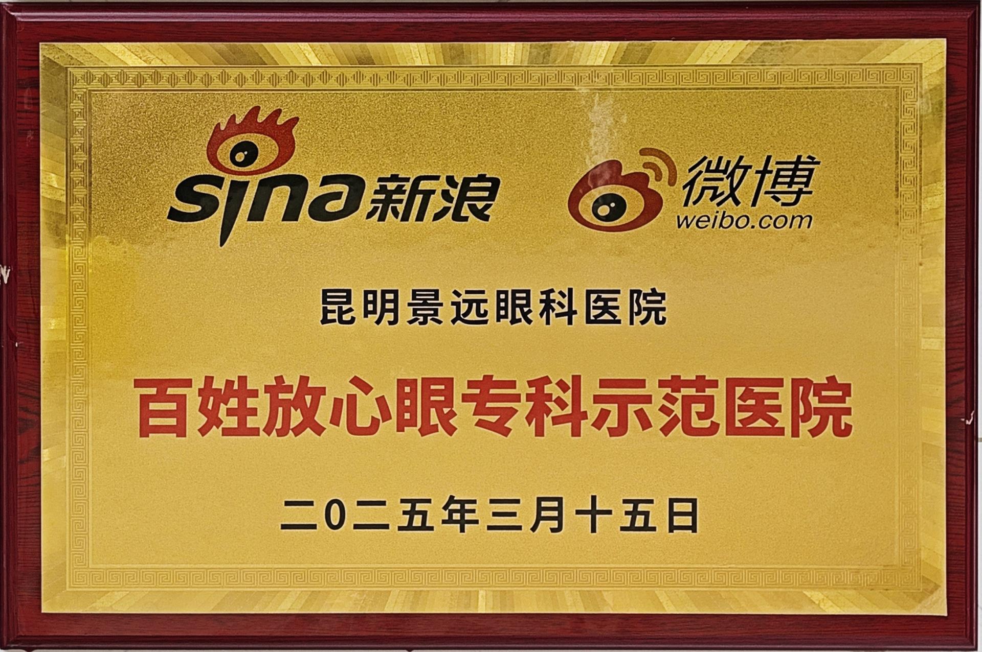 新浪、微博 百姓放心眼专科示范医院