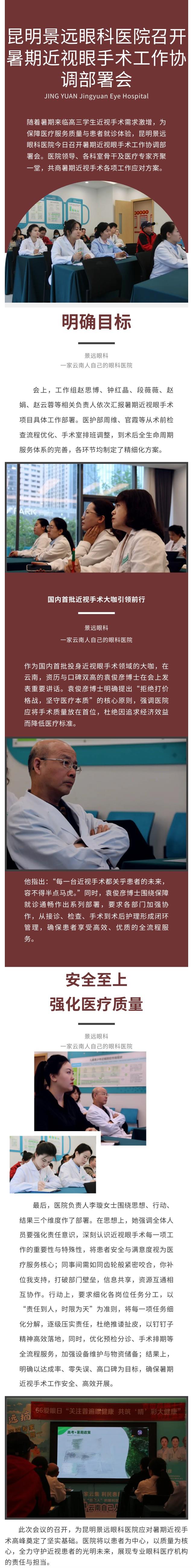 昆明景远眼科医院召开暑期近视眼手术工作协调部署会