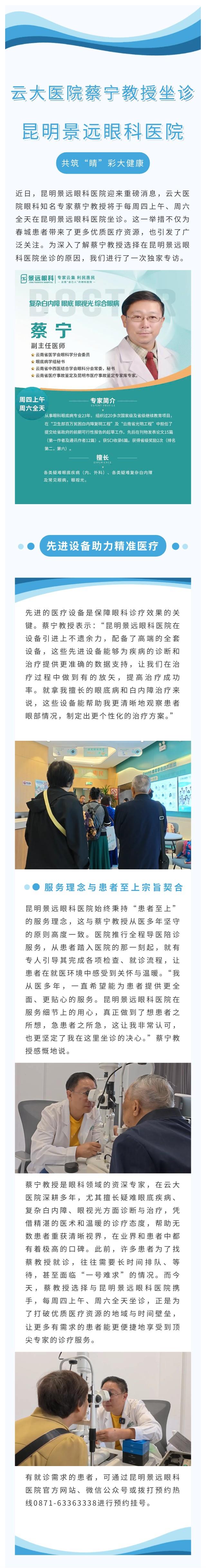 云大医院蔡宁教授每周四上午、周六全天坐诊昆明景远眼科医院,携手共促眼科医疗新发展