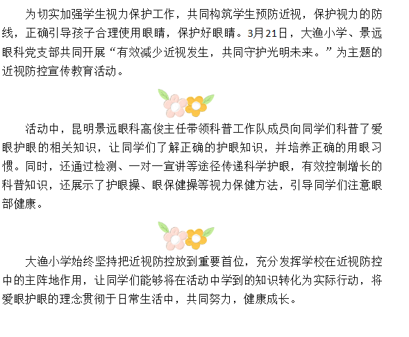 三月全国近视防控宣传月|大渔小学&景远眼科共同守护光明未来